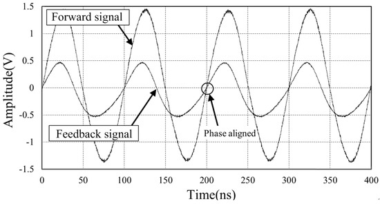 The feedback signal is phase aligned to the forward signal, with the help of phase stabilizer. The residual phase difference is less than at 10 MHz.