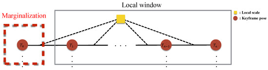 Marginalization of the old keyframes with local scale. Marginalized measurements are used as the prior for the next optimization.