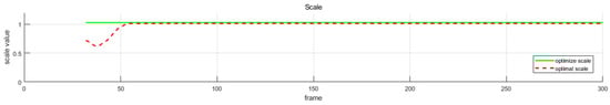 The optimized scale variable for the sequence MH (Machine Hall) 01. The optimal scale value is computed by aligning the estimated visual trajectory with the ground-truth poses via [42]. Our bootstrapping algorithm estimates reliable initial scales within the 50th frame, then updates the local scale by Equation (26) incrementally. It can be verified that the estimated scales are very close to the optimal values.