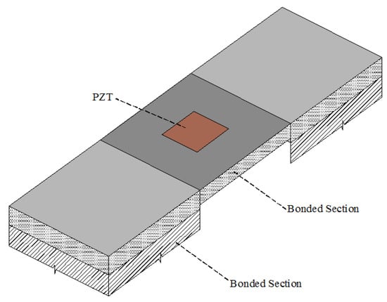 The output of the PZT voltage is affected by four values, which are S1 (longitudinal strain developed in the beam at the level of the PZT patch), Kb (correction factor to take care of the shear lag effect in bond layer), Kp (correction factor due to Poisson’s effect), and Sq* (circuit sensitivity), where the value of Kb is independent of the material properties of the sensor and depends only on its geometry and the nature of the adhesive layer. Kp is affected by the Poisson’s ratio of the main structural material and the piezoelectric coefficients d31 and d32. Under the other conditions, the larger the value of d31 is, the smaller the value of Kp will be. The specific formula is described in detail in References [14,15]. Although the numerical models constructed for SBPS and embedded CVS are not the same, Yeff, which is width fraction for the PZT patch, is considered to be uniform for both SBPS and embedded CVS, ignoring the shear hysteresis effect along the PZT patch width.