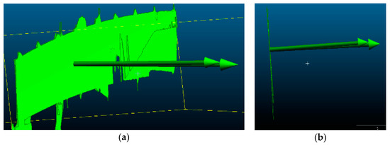 We must process obtained point cloud samples in a certain way before the analysis. Most of the studies which focus on the processing of the point cloud mention three general steps: data sampling, noise reduction, and shadow filling. Data sampling helps to reduce the input redundancy, and its roots can be traced to clustering by Schreiber [10] and Thinning algorithms by Floater et al. [11]. Hou et al. [12] presented an entirely new approach where sampling is carried out by a virtual adaptive process. One of the excellent works on automation of noise reduction is by Fua et al. [13], in which the authors use it for the unstructured point cloud. There are many approaches to noise reduction, such as in Rusu et al.’s work [14], where the authors proposed using a sophisticated algorithm which consists of filtering the point cloud, removing outliers, and returning the linear indices to the points that are either inliers or outliers. This method eliminates noise and resamples the data without deleting the essential details. The shadow filling can be handled by performing additional scans, but there is a method that uses volumetric diffusion, developed by Davis et al. [15]. Raw point cloud data obtained directly after the measurements has to be processed with cleaning tools, and this so-called cleaning involves deleting redundant areas in the point cloud. Excessive regions of the point cloud contain data which do not directly refer to the considered scanned object, such as people, terrain, and trees, as in Figure 5a. We used the manual fencing procedure. The first step is to select an excessive part of the point cloud using a rectangular field, and then to remove everything in this field. The method is usually repeated a few times, as in Figure 5b. The result of the cleaning process is a point cloud representing only the considered object, as in Figure 5c.
