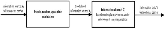 The information channel after pseudo-random space-time modulation. Information channel is based on Doppler movement under the sub-Nyquist sampling method. After pseudo-random space-time modulation, the mutual information between information source X1 and information sink Y is increased so that the scene with large value of sparsity is reconstructed.