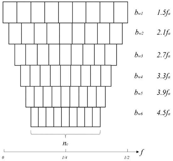 where is one of the frequency bandwidths, is the central frequency step size corresponding to a certain , is the sampling frequency, is the total number of the central frequencies for each bandwidth. The selection of the constant should ensure that for the minimum bandwidth is smaller than the bandwidth.