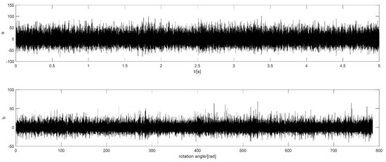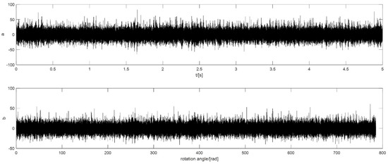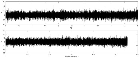 The vibration signal of roller defect with a constant speed: (a) the raw signal; (b) the signal after pre-processing.