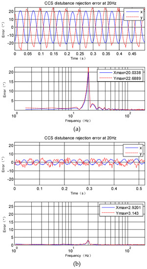 X-axis and Y-axis disturbance rejection error at 20 Hz. (a) disturbance rejection error of CCS; (b) disturbance rejection error of CS-FC.