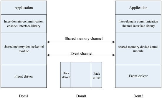 Traditionally, I/O devices are usually exclusively used by a single VM, and thus, become the bottleneck of virtualization performance. To complete interdomain communication between different VMs on the same physical device under the Xen virtualization environment, first a request needs to be sent to the front driver; then, the front driver transfers the request to the corresponding backend driver in Domain0 (the hypervisor domain) [41,42]. In this way, the transferring data first need to be copied from the application to the kernel, then encapsulated by the TCP/IP protocol, and transferred to the other domain through a complex flow control protocol. In addition, multiple check operations, like the checksum and handshake mechanism, need to be done in the transmission process to ensure correct transmission of the information. These result in multiple context switches, and thus degrade communication performance. In addition, the page-flipping mechanism, used to transfer a page between the VMs in the process, needs multiple hypercalls and flushes the page table and TLB (Translation Lookaside Buffer). From the above introduction to the process of the interdomain communication, we can see that traditional interdomain communication can largely degrade communication performance.