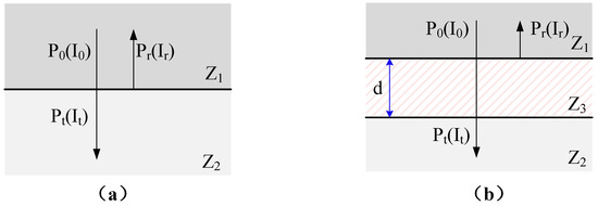 The schematic of ultrasonic vertical incidence. (a) Acoustic wave incident directly, (b) acoustic wave incident through the matched layer.