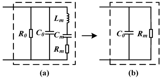 Equivalent circuit structure of the ultrasonic transducer: (a) equivalent circuit diagram of the transducer before resonance, (b) equivalent circuit diagram of the transducer after resonance.