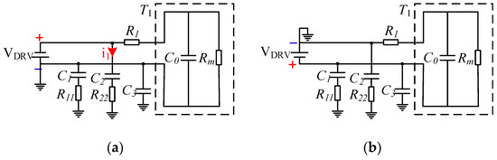 where n (n = 1, 2, 3, …, 32) is a half-pulse ordinal. Then, during the positive and negative pulses, the equivalent circuit of the driving system is shown in Figure 7. The descriptions of the components in Figure 7 are shown in Table 2 and these element parameters in Figure 7 have the same meanings as those in Figure 6.