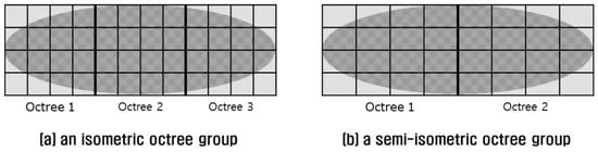 Comparison of octree groups: (a) an isometric octree group; (b) a semi-isometric octree group.