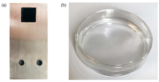 (a) Photo of the sample slot for crude oil type detection. (b) Photo of the sample cell for thickness detection of diesel oil.