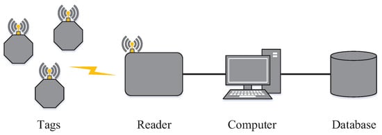 All information is stored on an electronic RFID microchip. The data stored on the tag’s chip will depend on the application. The purpose of a tag is to identify a particular object based on a unique identifier, called an ID or unique item identifier (UII) or even an electronic product code (EPC) code [13]. According to standardized tags, the IDs with the EPC standard provide an improvement in the RFID system, facilitating integration with global networks. To meet the requirements to deploy multiple labels in industry, RFID increasingly requires labels with larger IDs [14]. Once an ID is written to the label’s microchip, it can be read or even changed (if needed). The main precondition for the EPC standard is that all tags have a unique ID in the reader’s interrogation area, since IDs are not always evenly distributed.