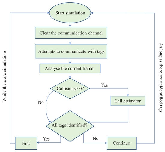 In general, the proposed estimators in the literature seek to improve the performance of DFSA. In [9] it is highlighted an efficient estimator compared to its counterparts: Schoute [10], Vogt [11], Eom-Lee [9] and Chen [12]. However, when considering the identification process of 10,000 labels, some estimators require a considerable amount of computational resources (such as CPU and memory). Thus, both complexity and performance should be taken into consideration when implementing the algorithm in an RFID tag, especially those with single-chip microprocessor.