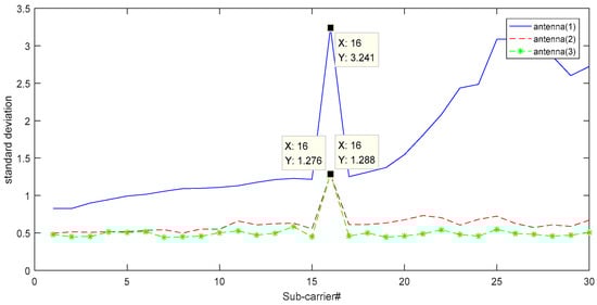 Standard deviation of the subcarriers of the three antennas.