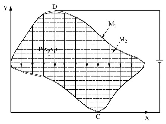 As shown in Figure 4, a rectangular coordinate system was established in the homogeneous conductive plane with an irregular shape.