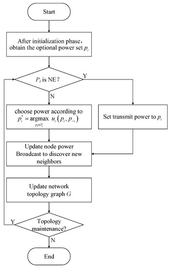 Figure 1, the transmit power of one node is adjusted for each round, and the remaining power of the node is unchanged. To ensure convergence to the NE, this algorithm uses the better response strategy update scheme proved in [