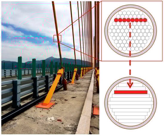 - Zheng, G.; Li, H. Normal Stress between Steel Wires in the Stay-Cable. Appl. Mech. Mater. 2011, 50, 541–546. [Google Scholar] [CrossRef]