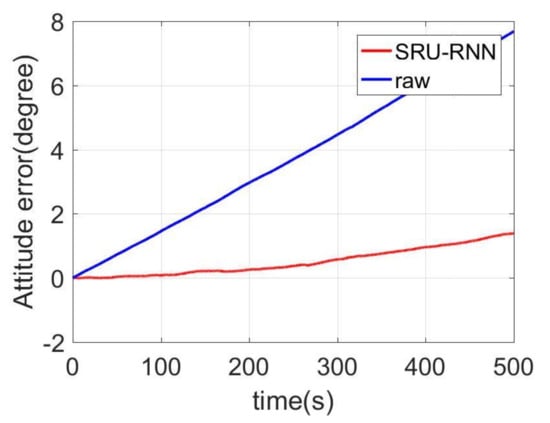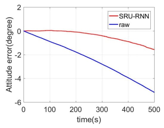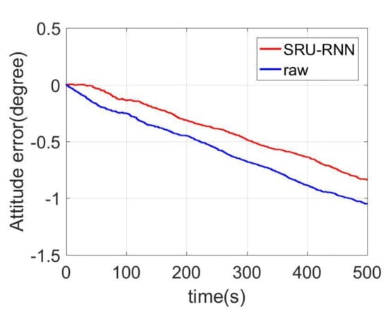 - The three-axis attitude had an improvement of 19.2%, 82.1%, and 69.4%, and which is consistent with the analysis from the three gyroscope signals. The results demonstrated the effectiveness of the proposed SRU-RNN method.