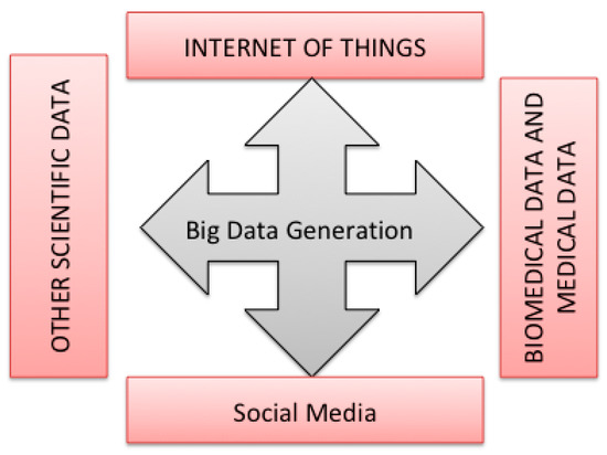 Furthermore, in recent years, with the expansion of the IoT and recent technological advancements, a growing number of intelligent information-aware devices, such as sensors, actuators, smartphones, smart wristbands, tablets, devices based on readers’ Radio Frequency Identification (RFID) and Machine-to-Machine (M2M), have led to the exponential growth of generated-data volume [3,4,5,6,7,8,9]. In general, these devices, and especially sensors, are used both in industry and research to collect data in various application contexts, such as healthcare, environmental monitoring, and precision agriculture [10]. The significant advance in research and engineering has introduced novel architectures for data acquisition, transmission, large-scale data storage, and processing. Moreover, the emerging Big Data paradigm, mainly used to describe massive data, is experiencing renewed interest in both the industrial and scientific world [11]. A number of domains, such as the IoT, artificial intelligence, and data science, are benefiting from digital transformation allowed by Big Data.
