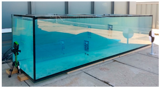 The controlled experiments have been conducted in a water pool and a large water tank (approximately 3 m long) with transparent glass walls (Figure 2). The water transparency was adjusted by adding colloidal liquid (Maalox). Two types of targets have been used in the experiment (Figure 3): standard black and white Secchi disk and modified 1951 USAF resolution test chart, which is a resolution test pattern conforming to MIL-STD-150A standard (Figure 2b). It is still widely accepted to test the resolution of optical imaging systems. Each test chart element consists of three horizontal and three vertical bars. The camera resolves a chart element, if the horizontal and the vertical bars can still be recognized as three distinct bars und don’t blur into one another. The size of the chart was 14 × 14 cm and the width of the bars decreased from the widest 3.7 mm to the narrowest 1 mm.