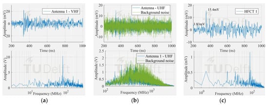 Smallest surface signal measured by (a) antenna 1 in VHF; (b) antenna 1 in UHF; (c) HFCT 1.