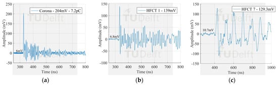 Largest corona signal measured by (a) Test cell HFCT; (b) HFCT 1; (c) HFCT 7.