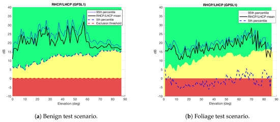 - Nominal (green area): Above the fifth percentile of the RLR in the benign scenario. In this area the received multipath is considered to be the one received under nominal conditions and the measurements should be considered by themselves (or traditional weighting).