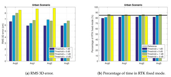 | Scenario | Relative Improvement RMS 3D Error | RTK Fixed (% of Time) | RTK Float RMS 3D Error (cm) | ||