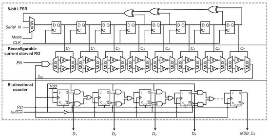 - Yang, K.; Dong, Q.; Blaauw, D.; Sylvester, D. A physically unclonable function with BER <10−8 for robust chip authentication using oscillator collapse in 40 nm CMOS. In Proceedings of the 2015 IEEE International Solid State Circuits Conference, San Francisco, CA, USA, 22–26 February 2015; pp. 1–3. [Google Scholar]