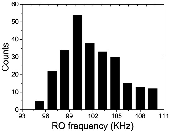 The distribution of RO’s oscillation frequency for one sample chip.