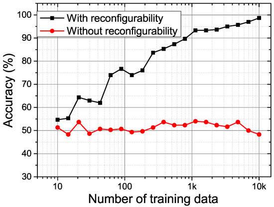 The prediction accuracy by support vector machine (SVM) for the proposed PUF with and without reconfigurability.