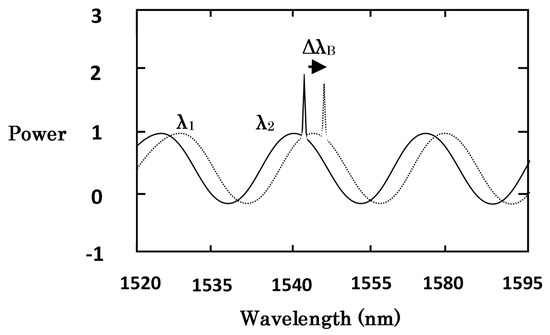 Figure 4 showed the transmission spectrum (1.5 µm) of the hybrid sensor. The wavelength shifts of transmission spectra (1.5 µm) were recorded by a self-manufactured optical spectrum demodulation (OSD) system (Bayspec Inc., San Jose, CA, USA), in which the acquisition rate was 8 kHz and wavelength resolution was 0.1 pm. The spectral period change of FFPI was mainly determined by the micro-cavity length. The wavelength of the FBG and the cavity of the FFPI would change with the increase of environment temperature.