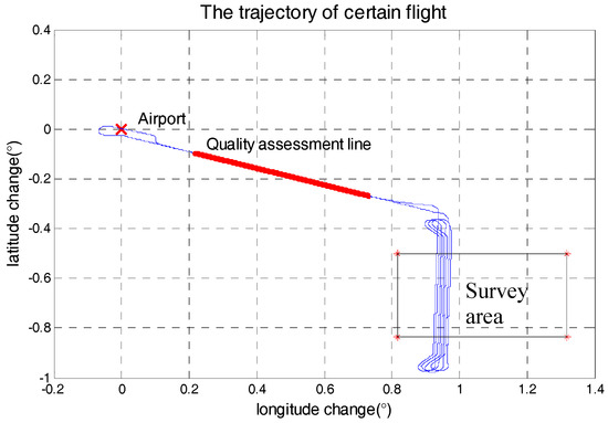 The classical quality assessment methods need additional flight or extra information. The most common and classical quality assessment methods of airborne gravimetry are internal root mean square error (RMSE) and external RMSE evaluation methods. Evaluating internal RMSE needs repeat line flight to acquire gravity disturbance data in the same line or grid flight to acquire gravity disturbance data in the same point. The former is called repeat line internal RMSE and the latter is called the cross point internal RMSE. Equations (1) and (2) described the principle of repeat line internal RMSE. The principle of cross point internal RMSE was expressed by Equation (3) [20].