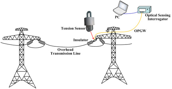 A dynamic tension detection system was developed to detect the overhead transmission line galloping. The system composes of FBG tension sensors, an optical fiber composite overhead ground wire (OPGW) and a wavelength interrogator. A schematic diagram of the system is shown in Figure 1.