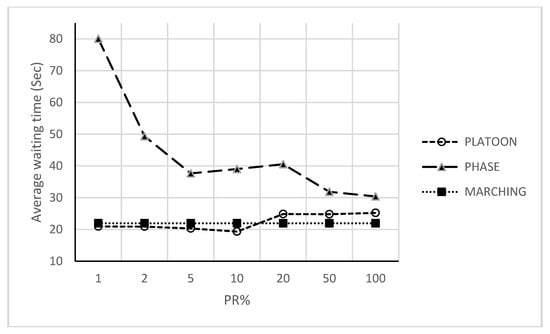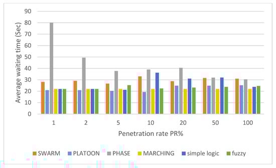 Average waiting time versus penetration rates with policy selection procedure algorithms.
