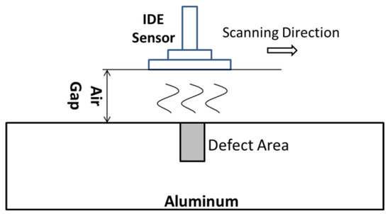 Interdigital electrodes (IDEs) are mainly used for filter [20] and antenna [21] designs that are compact and light. Recently, IDE sensors have been used to monitor changes in dielectric materials [22] and gas sensors [23] and can also be used for the surface defect detection of metallic materials [24], due to the extraordinary feature of IDE sensors. The IDE sensors are sensitive enough to distinguish the variation of closed regions. It is particularly advantageous for defect detection, as it significantly reduces undesirable factors influencing sensor response.