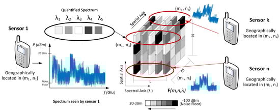 - In CSI, the image is modelled as a 3D data cube where each pixel has a position and a spectral signature that is represented by the vector . In CSMC, each sensor is located in a geographical point and can sense the spectrum in L frequency bands, whose central frequencies are represented by the vector .