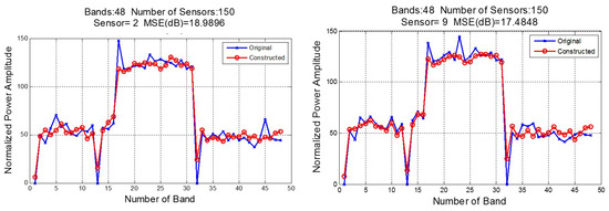 Figure 22 shows two examples of the comparison of the MSE for the original power spectral signal (with L frequency points) with the reconstructed one. In this case, we compare sensors 2 and 9 in a data cube with 150 sensors and 48 bands.