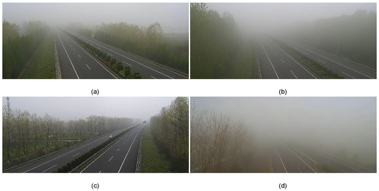 Foggy and hazy images (Sample images of road points 2–4, and 6 are shown in (a–d), respectively).
