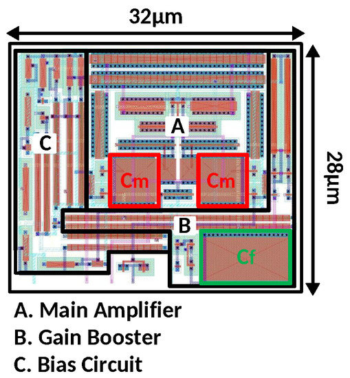 - Sansen, W.; Chang, Y.Z. Feedforward compensation techniques for high-frequency CMOS amplifiers. IEEE J. Solid-State Circuits 1990, 25, 1590–1595. [Google Scholar] [CrossRef]