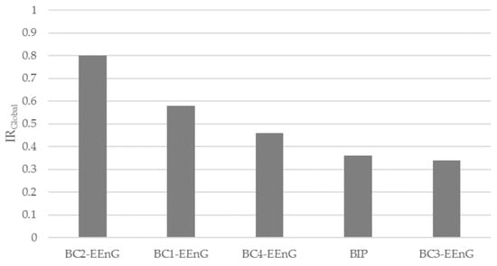 IRGlobal for each concentric bipolar configuration (BC1-EEnG, BC2-EEnG, BC3-EEnG and BC4-EEnG) and conventional bipolar (BIP).