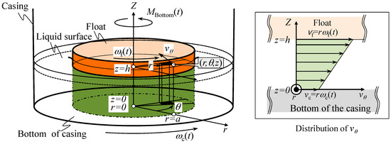 At first, MBottom(t) is estimated based on a simple model shown in Figure 2. Now we assume that the liquid in the casing can be treated as the Newtonian fluid, and it flows only in the circumferential direction about the Z-axis in the figure. In this case, the shear stress τ in the liquid can be expressed as follows [24]: