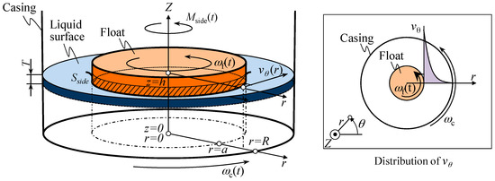 Denoting the angular velocities of the float and the casing as ωf(t) and ωc(t), respectively, the fluid velocity at the bottom surface of float vf and that at the bottom surface of casing vc can be expressed as vf = rωf(t) and vc = rωc(t), respectively. The shear stress dτ to be applied to the area element dS can therefore be expressed as follows: