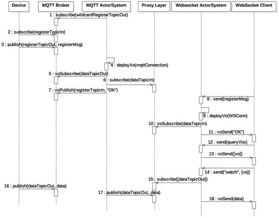 The accessibility layer acts as an interface between the IoT and web technologies. Therefore, it is the closest layer to the heterogeneity of IoT protocols, such as MQTT (Message Queuing Telemetry Transport) [22] or CoAP (Constrained Application Protocol) [23], among others. In this layer, solutions are found in the form of a proxy or bridge between the IoT and HTTP protocols.