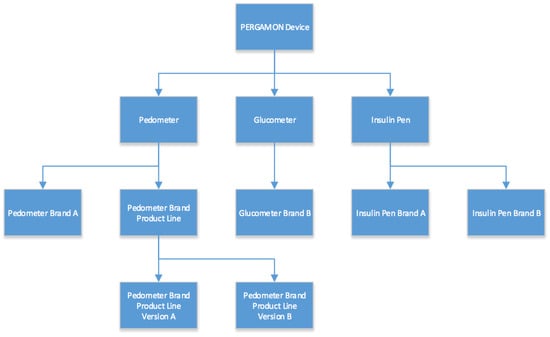 Figure 3). Every device will be a “PERGAMON Device” in the system, and as such all devices will have the common functionality associated with it. PERGAMON Devices will implement the very basic behaviour of request and reply handling, as well as containing the identifier for which device this class represents. On the next level in the architecture, different types of devices can be found. The three initial types are “Pedometer”, “Glucometer” and “Insulin Pen”. These classes define in which data format the devices will be expected to return data. Every device will fit one of these categories and more categories can be added if needed.