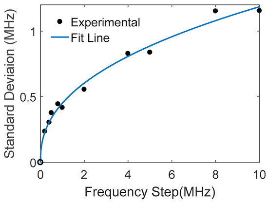 Figure 7. Standard deviation of fitted peak frequencies vs. frequency step.