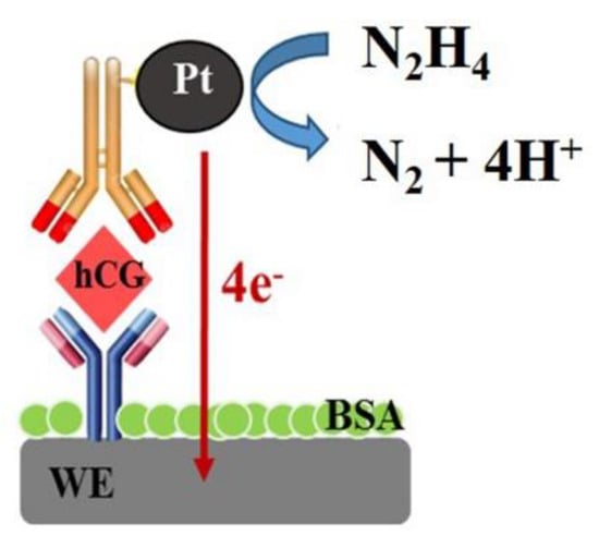 Schematic illustration of the electrocatalysis of hydrazine by PtNPs at secondary antibody.