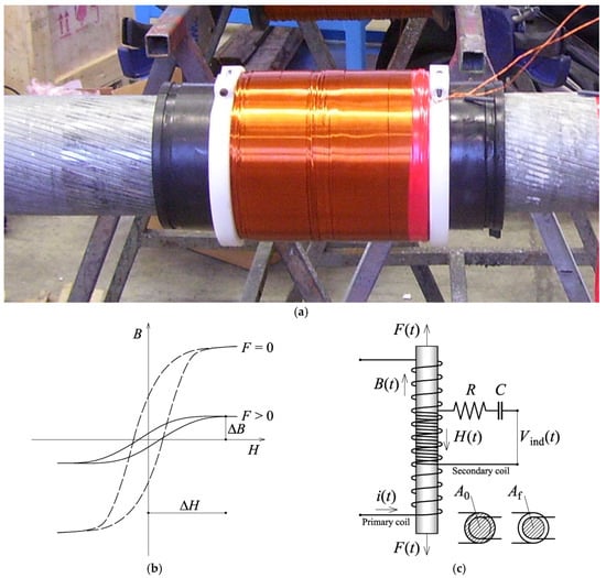 - Jarosevic, A. Magnetoelastic method of stress measurement in steel. Smart Struct. NATO Sci. Ser. 1998, 35, 107–114. [Google Scholar]