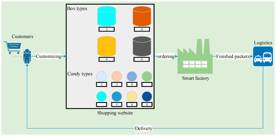 Based on the proposed framework and data processing scheme, we constructed a smart factory prototype. We present this prototype here as supporting material and for reference. If a consumer can select the box types, the candy types, and the number of candies of each type, they can customize their unique packet of candies, which can be used as an interesting gift. We address this kind of desire by providing an integrated solution, as shown in