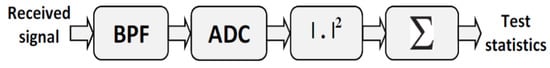 The spectrum sensing techniques often employed for local sensing are energy detection, cyclostationary detection and matched filter. The matched filter (also referred to as coherent detector) is widely regarded as the optimum approach but it relies heavily on the accurate priori knowledge about the PU signal, which is hard to be obtained. Cyclostationary detection can distinguish the PU signal from noise at very low signal-to-noise ratio (SNR) but still needs some priori knowledge about the PU signal. Energy detection [24,25] is the most practical method because it merely estimates the signal energy on the considered band and produces good performance without any priori information about the PU signal, as illustrated in Figure 2. Furthermore, energy detection is a viable choice for vehicular networks on account of its high mobile environment and low latency tolerance.